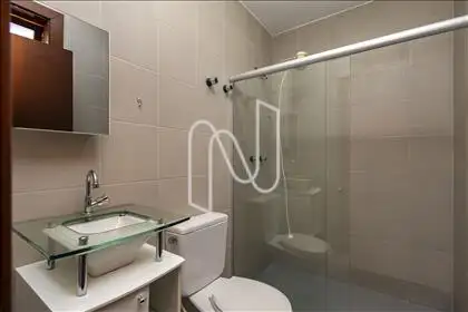 - Banheiro social com piso e bancada em granito e box em blindex